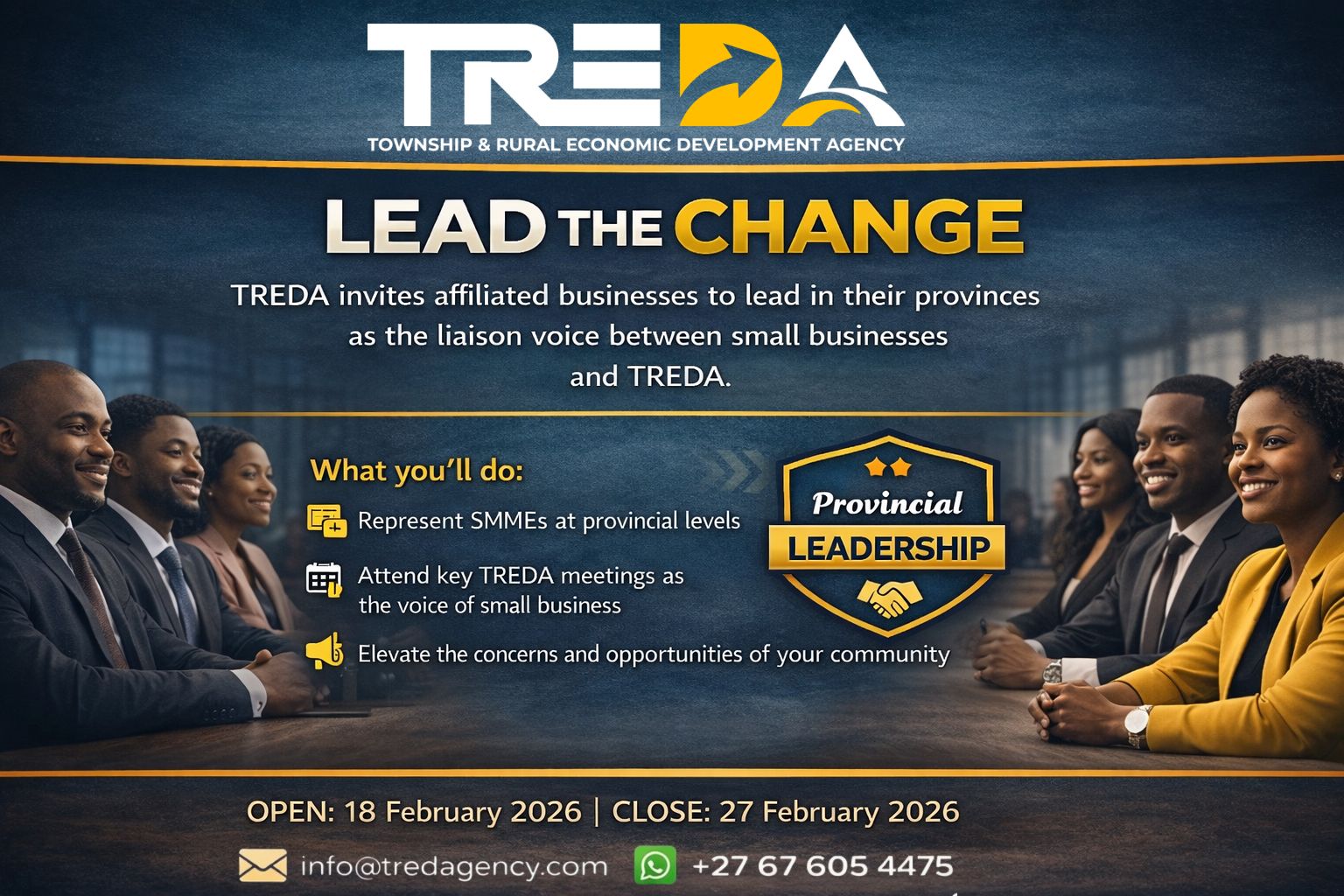 The Township & Rural Economic Development Agency (TREDA) has officially announced a prestigious opportunity for affiliated businesses to step into the spotlight. Under the banner “Lead the Change,” TREDA is seeking dedicated representatives to serve as provincial liaisons, bridging the gap between local small, medium, and micro-enterprises (SMMEs) and the national agency.